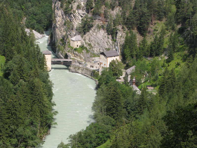 Jetzt kann ich es denen verraten: Auf der normalen Linie nach Landeck gibt es eine normale Haltestelle "Hochfinstermünz". Den Rest kann man sich denken!