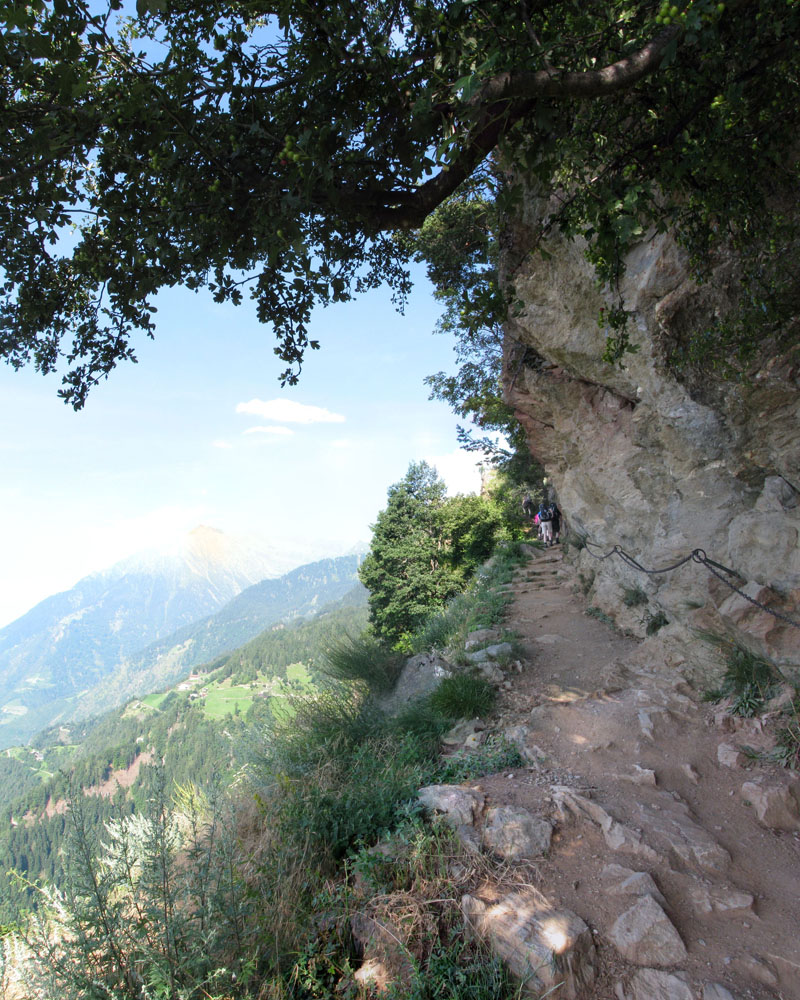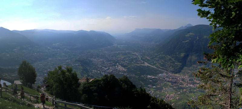 So sieht Meran von oben aus (links über den Wanderern ist Dorf Tirol):