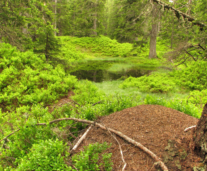 Im Vordergrund der Ameisenhügel,