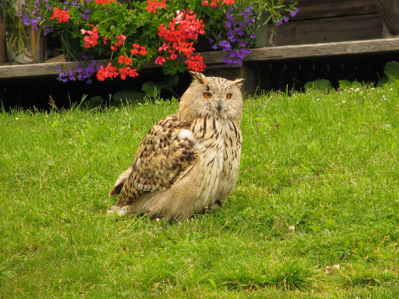 Ein Uhu im Freigang, nicht in seiner Tube.