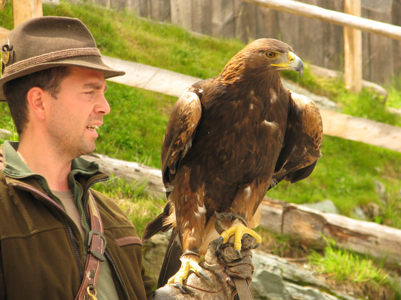 Hier das österreichische Wappentier (wir haben den Fischadler) darf also nicht, wird uns aber dennoch vorgeführt - mit Handschellen.