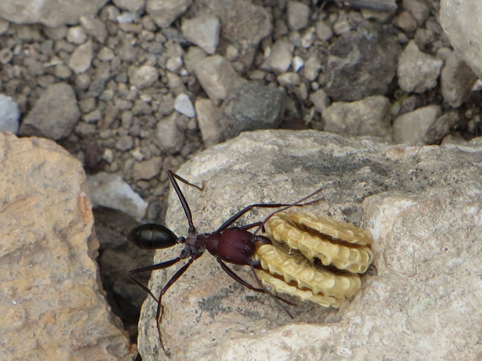 Die Kollegin schleppt sich ganz schön ab. Da freuen sich die anderen Ameisen aber über diesen Appetithappen.