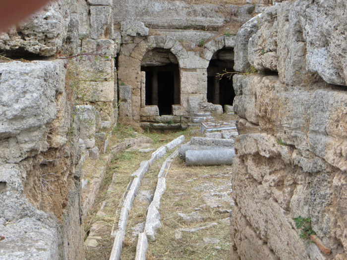 In diesem Haus trat die Quelle des Flüsschens Peirene aus. Hier sind wohl die Spuren der Regulierung durch die
