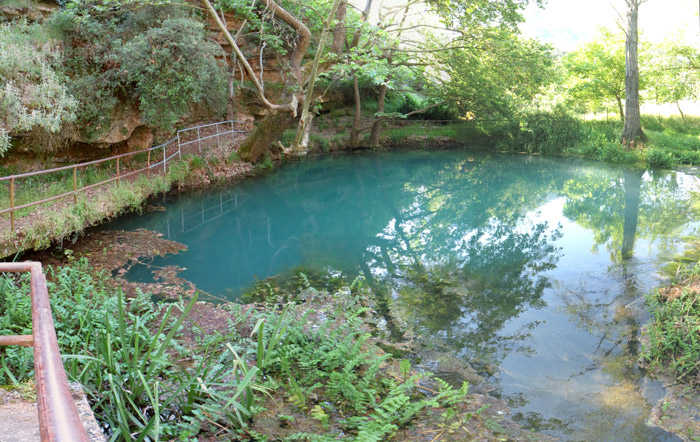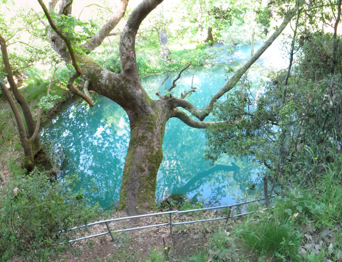 Hier tritt also ein unterirdischer Fluss an die Oberfläche und fließt hinten rechts als Ladon ab.