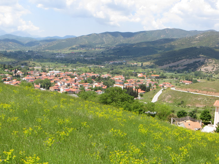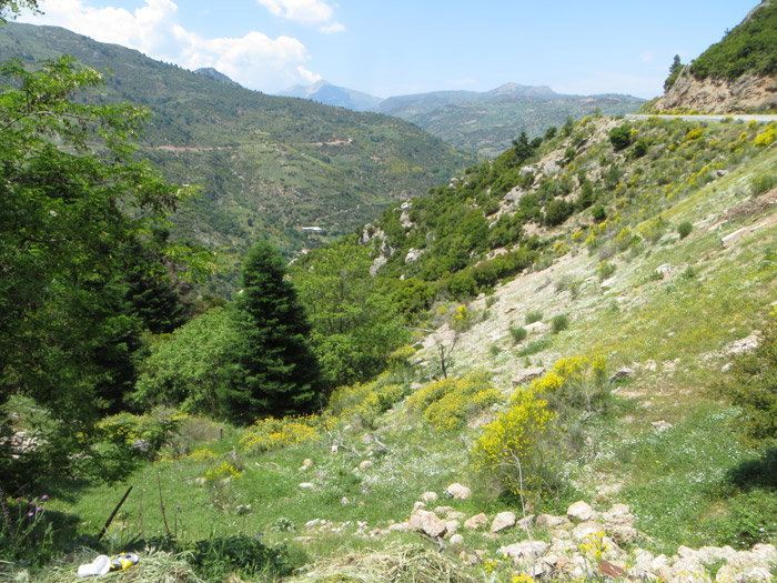 Und das ist ein Blick vom Parkplatz in das Tal. Die ersten Häuser von Zachlarou sind zu sehen.