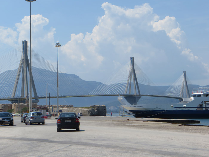 Jetzt geht es über Diakofto weiter nach Patras. Ich will über die Brücke und erlaube dem Navi deshalb auch Mautstrecke.