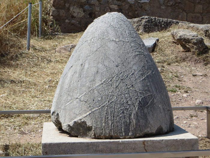 Und das hier ist der Nabel der Welt, ein Stein, den Apollo angeblich um die Erde geworfen hat.