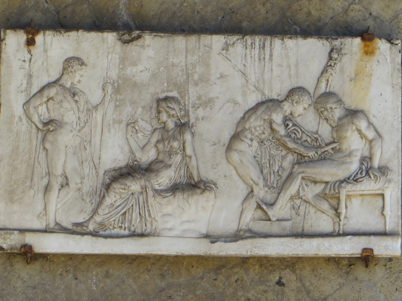 Das Telephos-Relief im gleichnamigen Haus. Telephos war Sohn des sagenhaften Gründers der Stadt, nämlich Herkules.