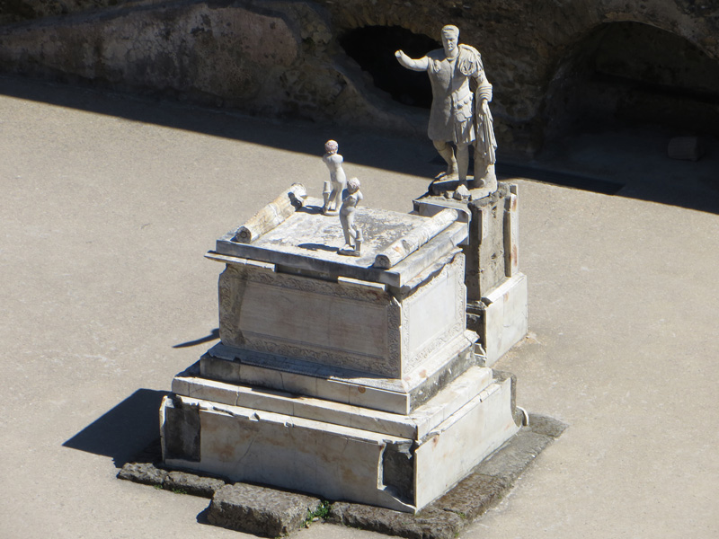 Auf dem Platz des Senators M. Nonius Balbus, dem ein großer Teil der Stadt gehörte, steht diese Skulptur.