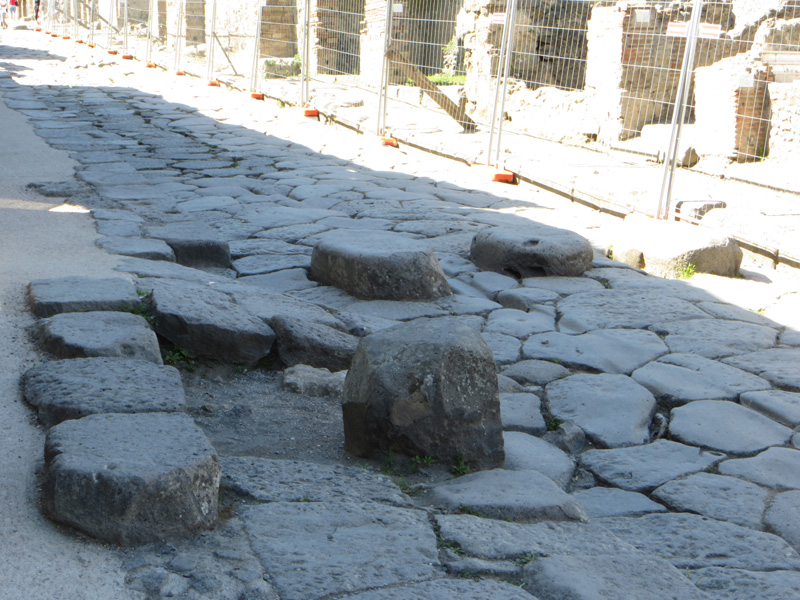 Und so sahen die Straßen bei den Römern aus, auf Normbreite Durchlass für die Pferdefuhrwerke im "Zebrastreifen"