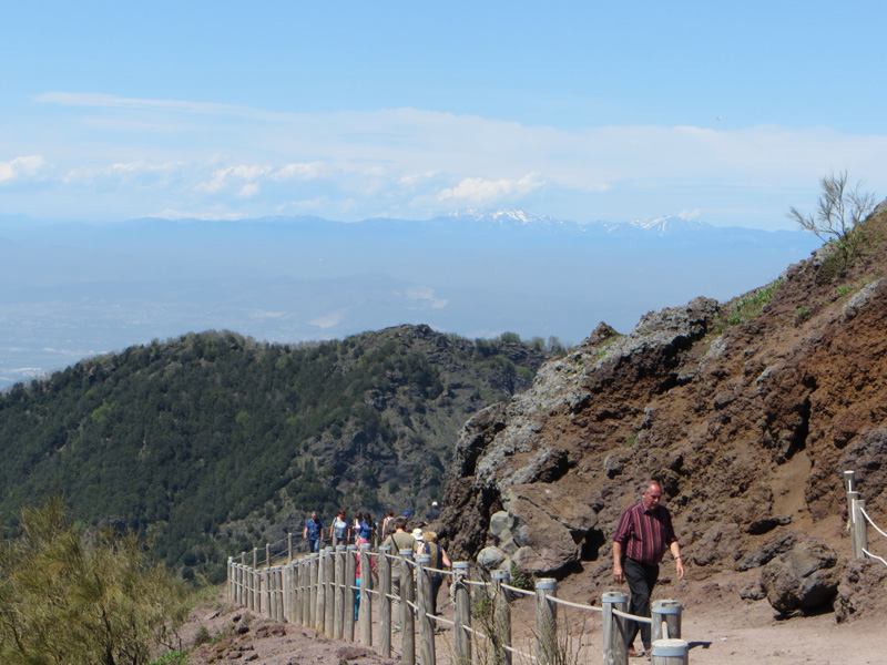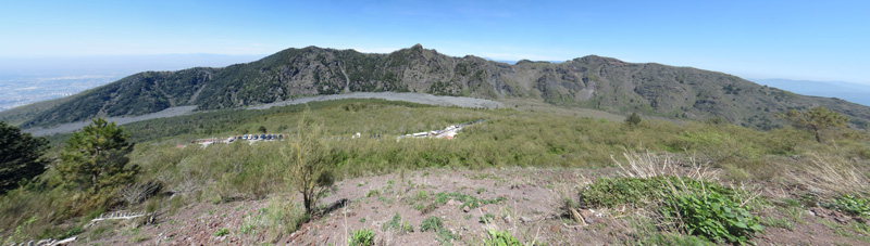 Vom Parkplatz mit dem Rücken zum Vesuv sieht man dieses Gebirge. Es ist der Monte Somma.