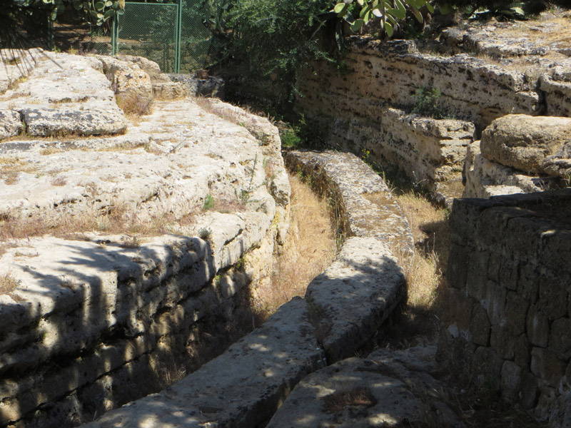 Direkt unterhalb sind noch die Reste vom Stadttor III zu sehen. Diese Spuren haben die Pferdefuhrwerke hinterlassen.