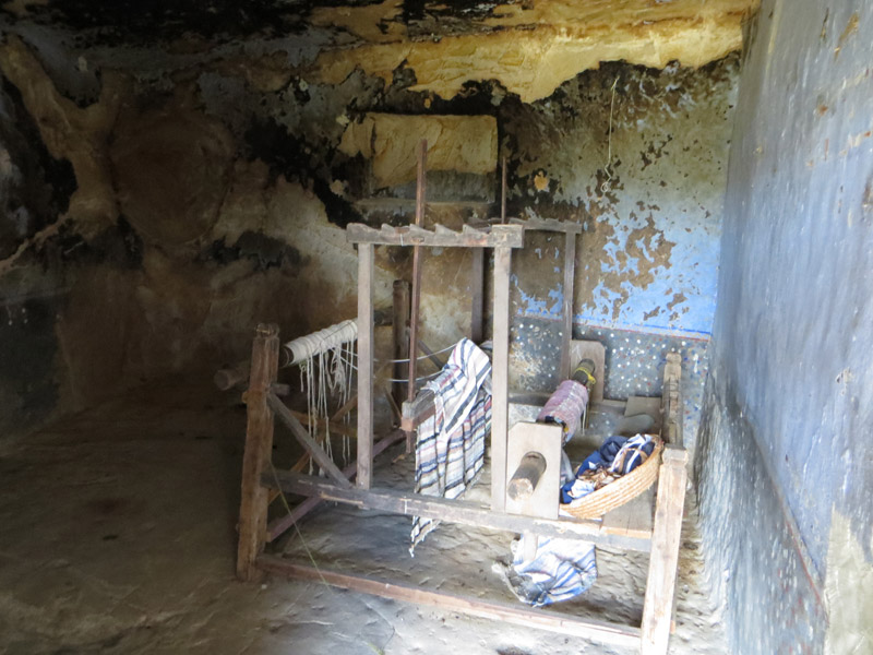 In einige Wohnungen kann man heute einblicken. Hier hat man dekorativ einen Webrahmen aufgebaut.