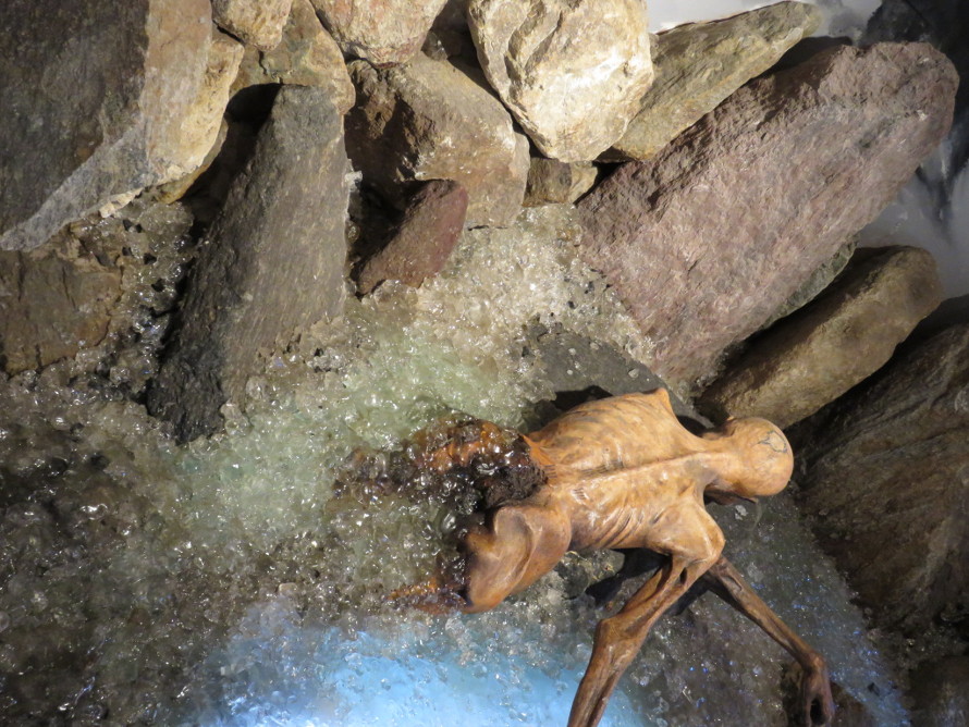 vom Gletscher ausgezogenen Kleider hat man später in der Nähe