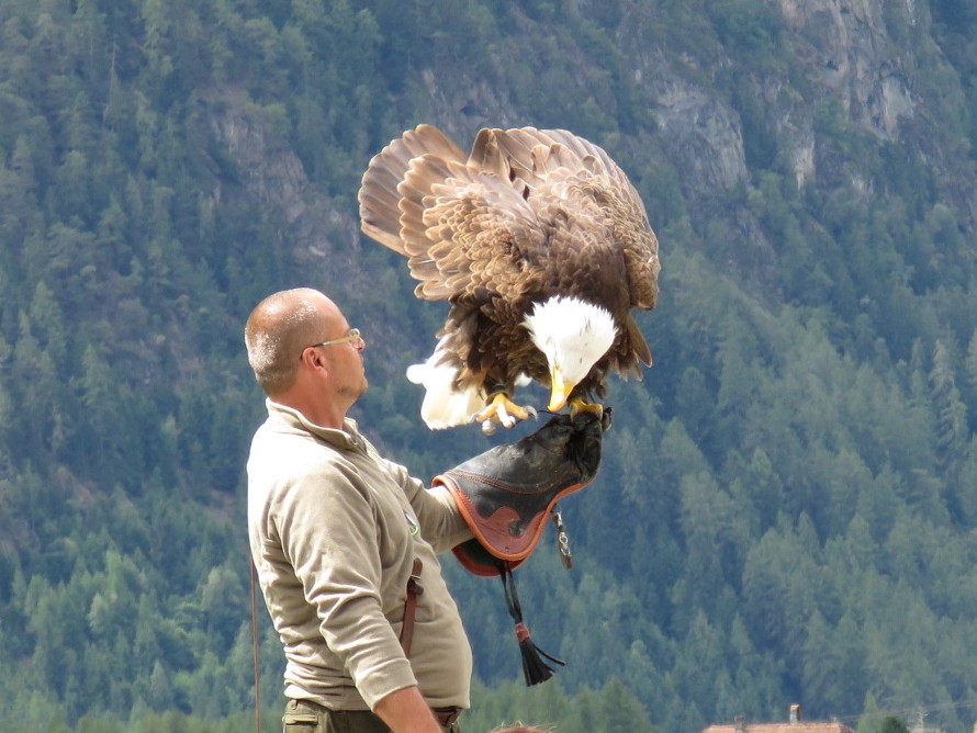 Krallen sind scharf. Daher die dicken Lederhandschuhe.