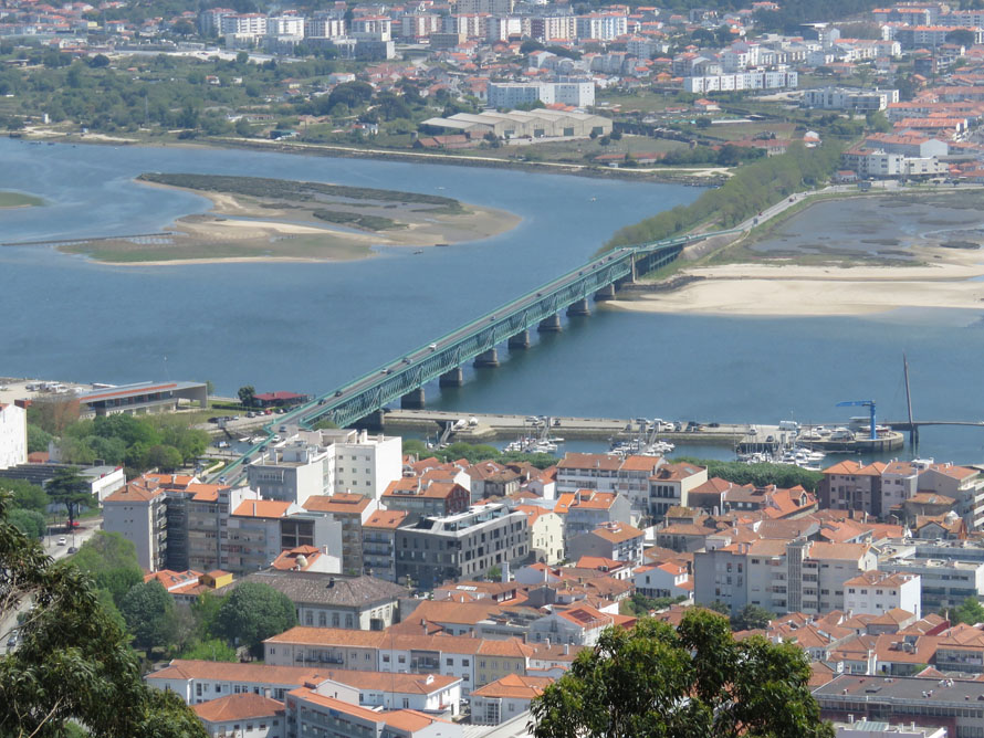 liegt die Altstadt, rechts am Lima steht das Ketten-Denkmal.