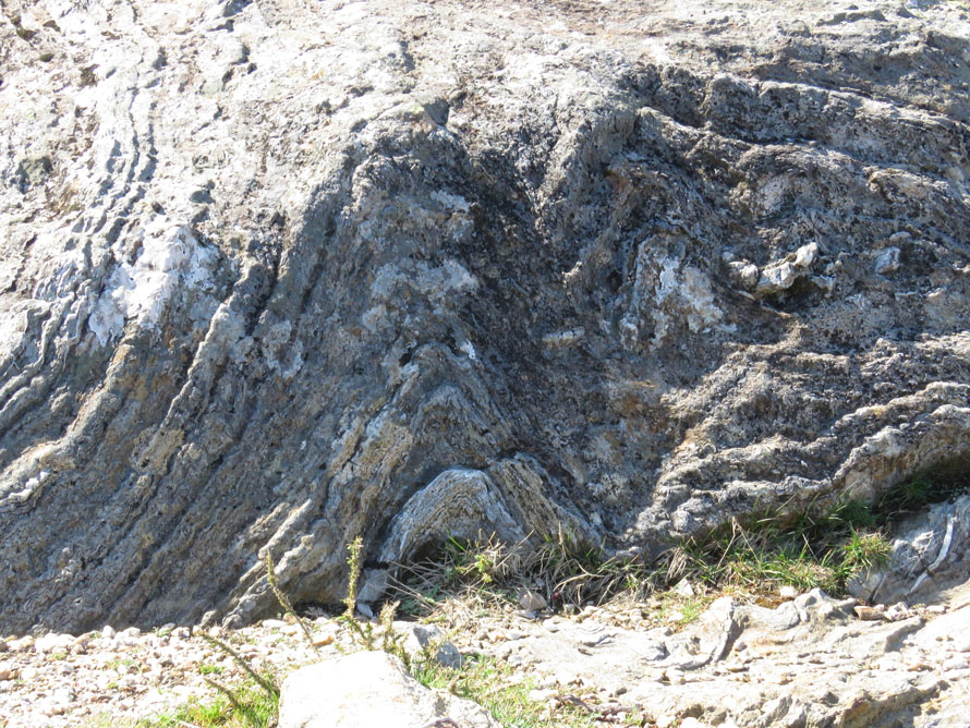 Hier sind Spuren heftiger tektonischer Bewegungen zu sehen.