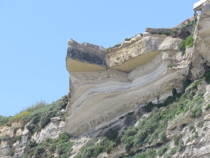 Da scheint in der Steilwand eine sehr harte Schicht eingelagert zu sein. Das