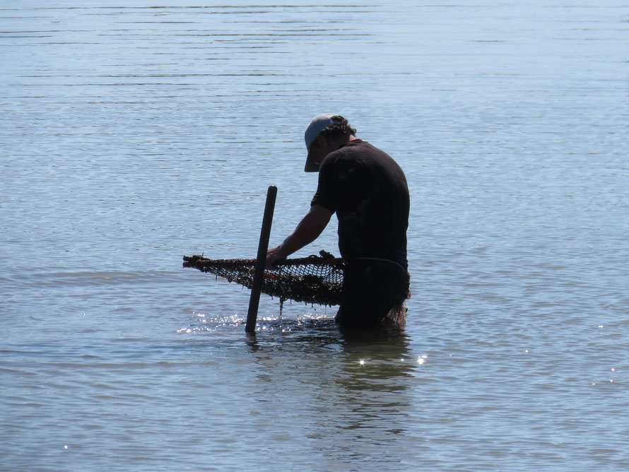Und dieser Mann fischt mit seinem Gitter auf dem Boden rum. Sucht er
