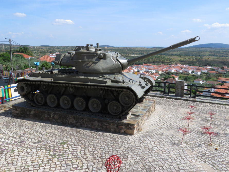 Am Dorfeingang ist ein Panzer in Stellung gegangen. Er dient jetzt als