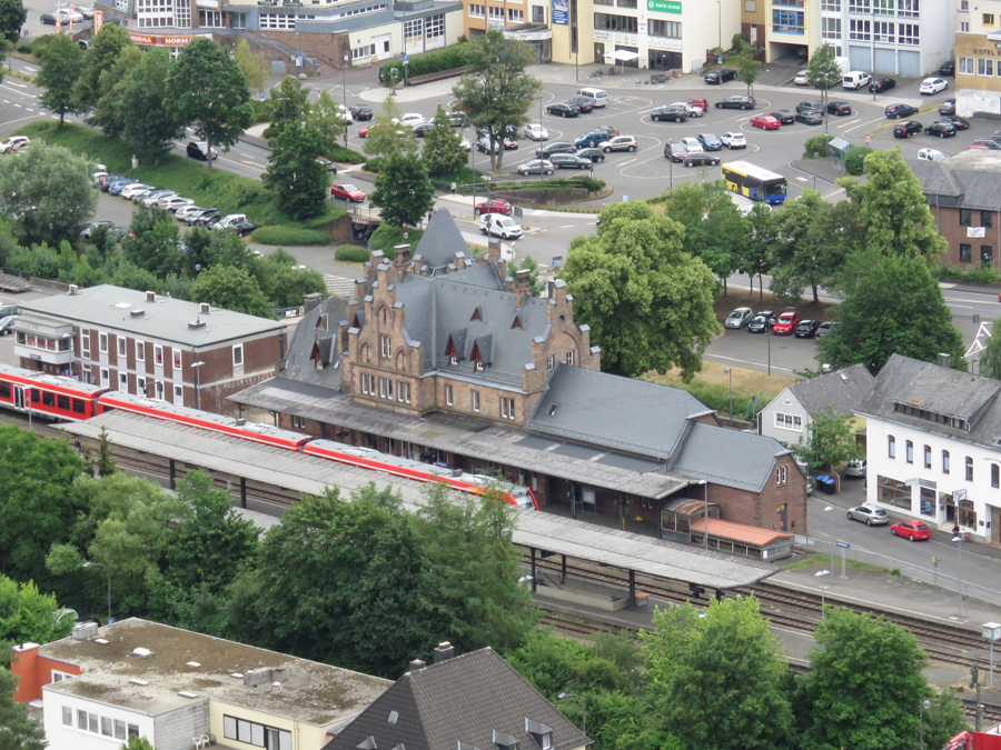 Etwa 500 m Straße aufwärts vom Bahnhof
