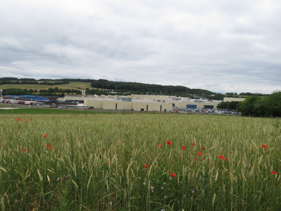 die größte Fabrik in Gerolstein. Links stehen etwa 50 LKW´s.
