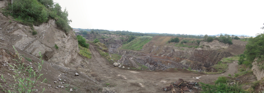 beim Basalt-Abbau freigelegt. Über dem Wagen ist ein Stück