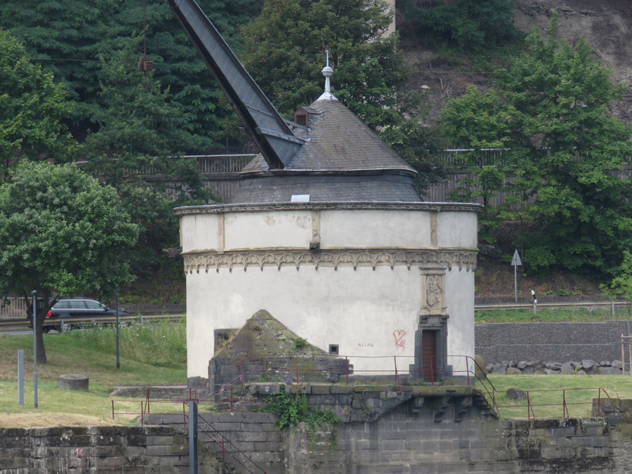 die diese Gallionsfigur Richtung Rhein zeigt.
