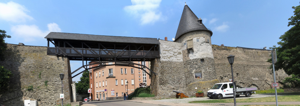 die alte Stadtmauer erhalten. Hier am Helmwartsturm hat man