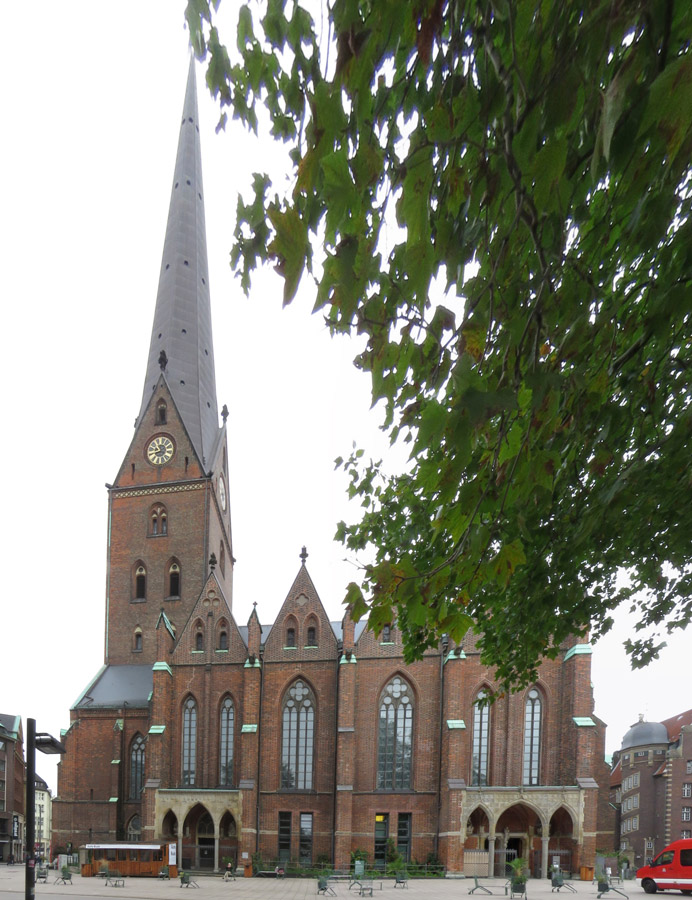 zur Petri-Kirche, deren Geschichte sich bis ins 11. Jh. zurückverfolgen