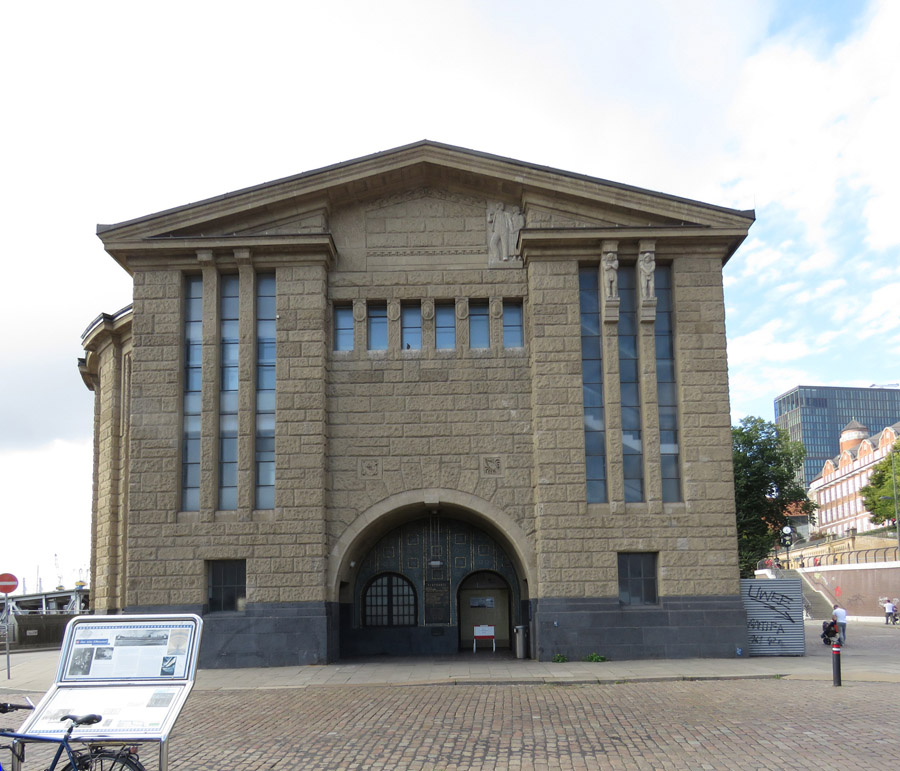Eingang zum alten Elbtunnel. Seit 1911 kann man hier auf 426 m Länge die