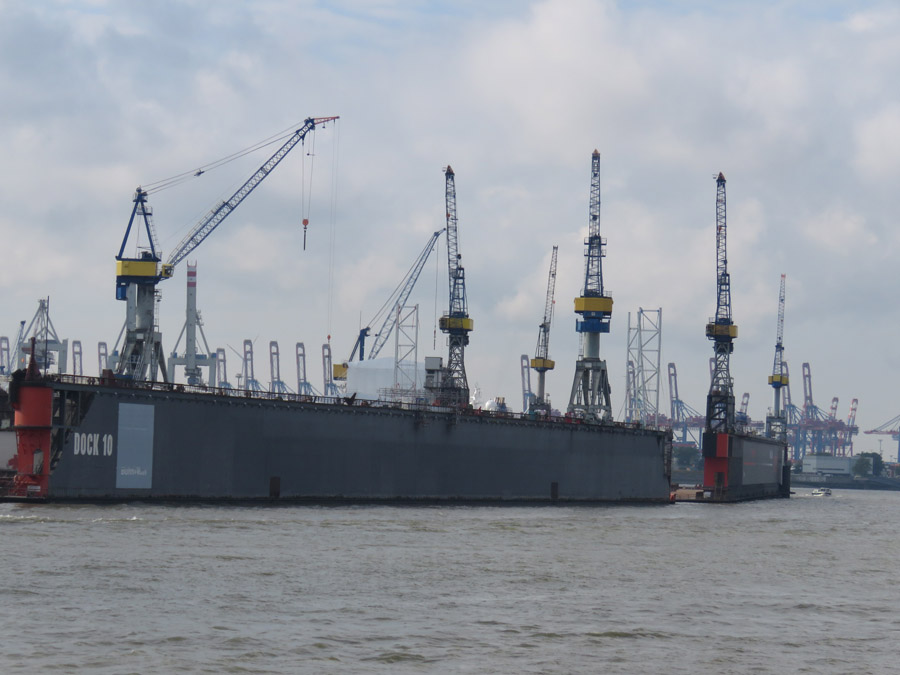 Und gegenüber sieht man die Kräne