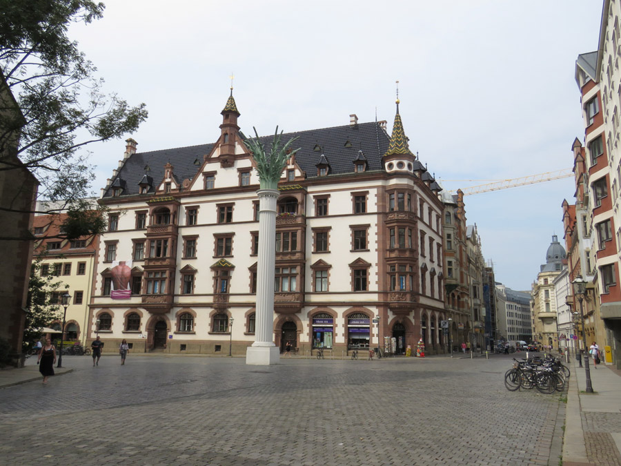 Nikolaiplatz enthält ansehnliche Bauwerke. Die "Palme" steht zum