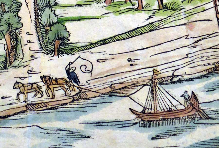 Pferde gezogene Kähne) erleichterte und sie bot zugleich eine flache Stelle im