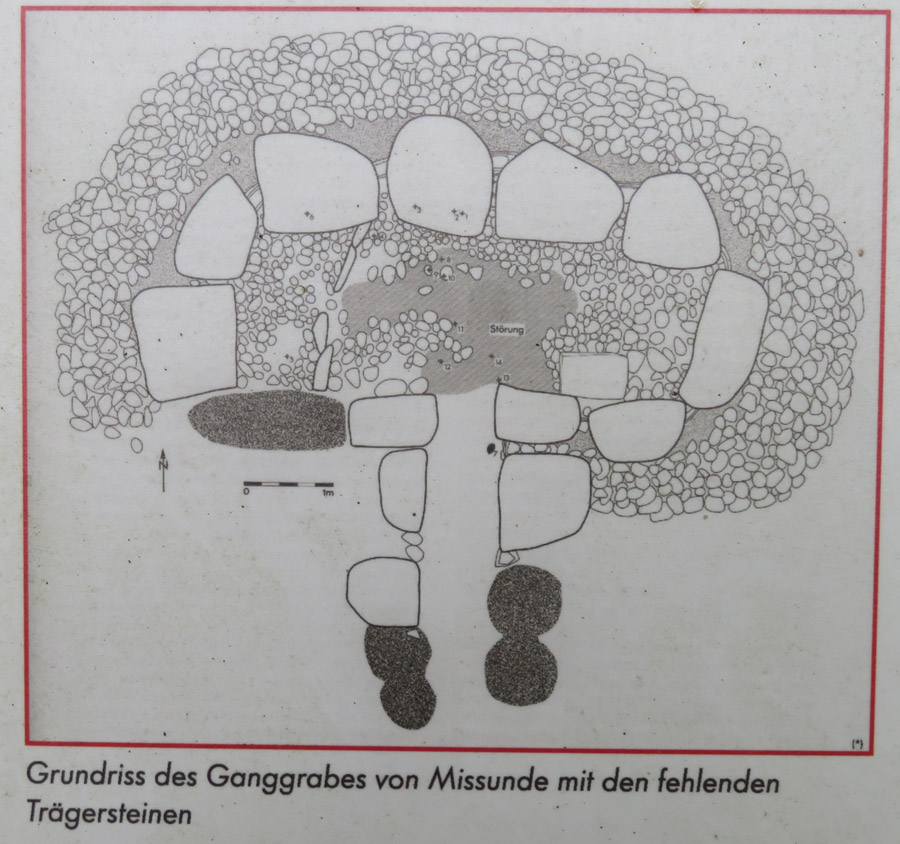 Tafel neben dem Stein abfotografiertes Schema des Ganggrabes.
