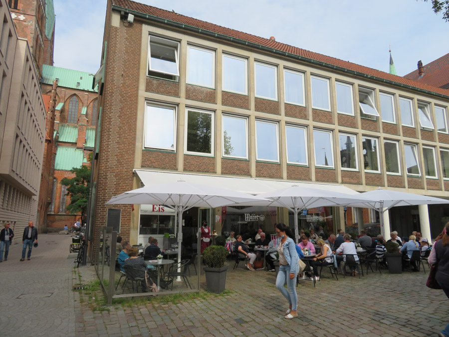 Arkadencafé an der Rathaustreppe (siehe Bild) und das Café in Lübeck-Travemünde in