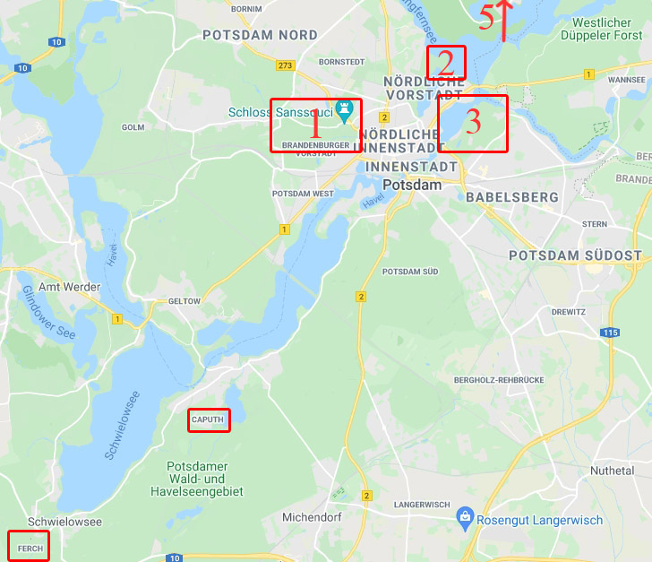 (Lage in etwa) 1 Park Sanssouci, 2 Neuer