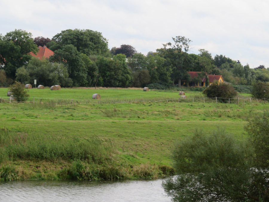 Vordergrund die alte Aller. Die eigentliche Aller vor den Häusern ist nicht zu
