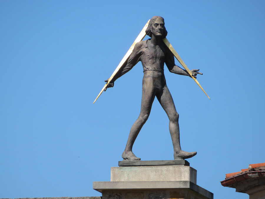 stellt Adam Olearius dar, den Erbauer des Schleswiger Globus.