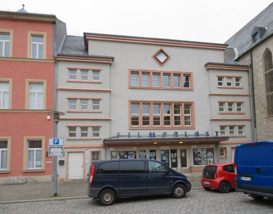 An die Kirche schmiegt sich der Filmpalast mit Einschlag der