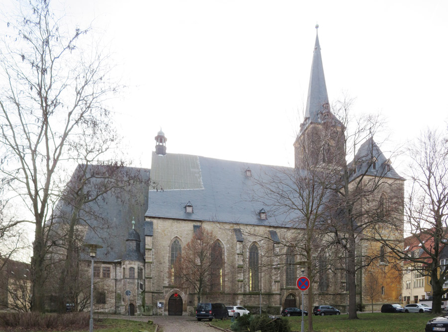 Im Hintergrund schimmert die Stadtkirche St. Josephi durch. 1406 - 1507,