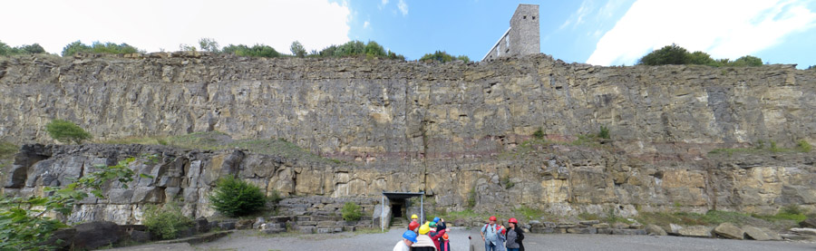 Der Höhleneingang liegt 36 Meter unterhalb der Steinbruchkante.