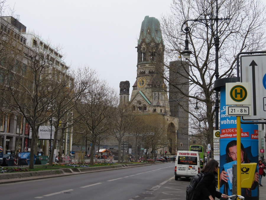 Jetzt noch an der Kaiser-Wilhelm-Gedächtnis-Kirche vorbei und der Kurfürstendamm beginnt.