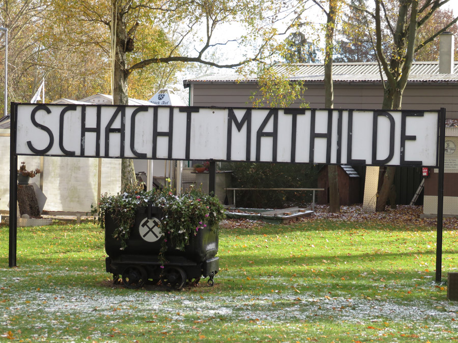 Foto auf einer Schautafel zeigt die Anlage von Schacht Mathilde. Das
