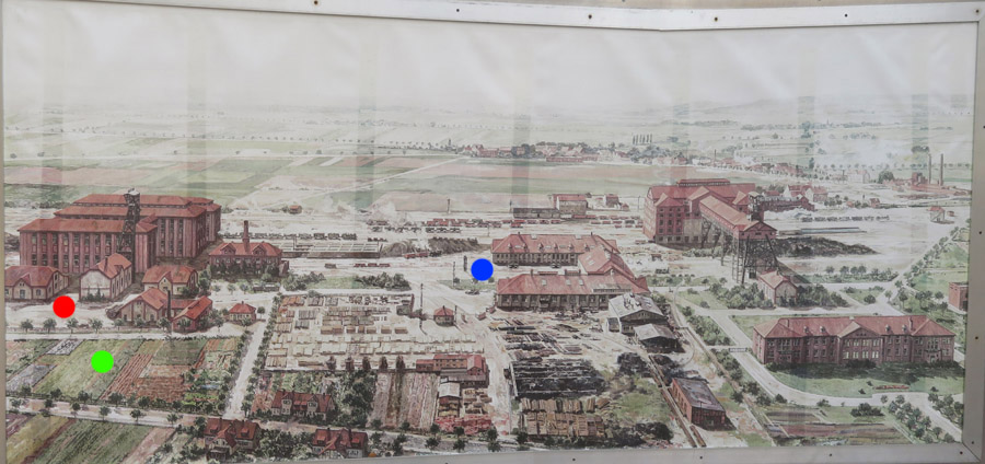 damaligen Hauptgebäude (grüner Punkt) hat man jetzt eine Gedenkstätte