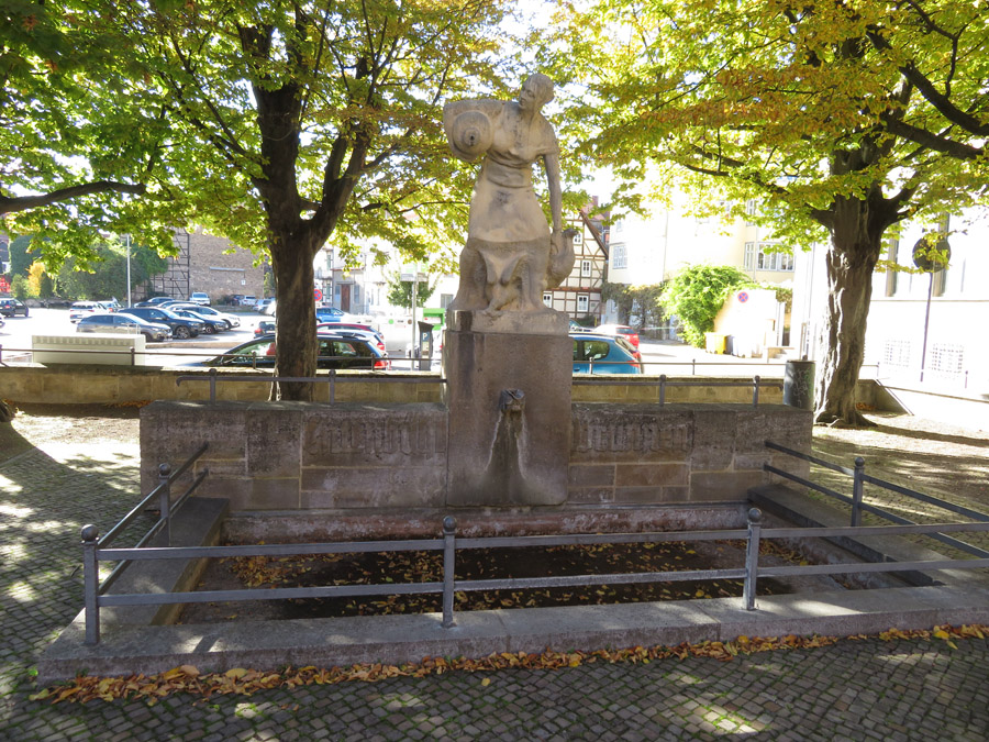 Feldlager zwischen Mühlhausen und Görmar hingerichtet." Sein Denkmal steht vor der Allerheiligen-Kirche. |