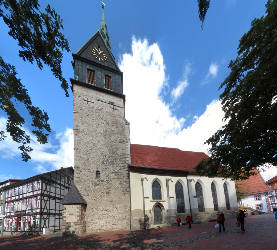 Das ist die Marktkirche St. Ägidien, die nach dem Brand wieder errichtet