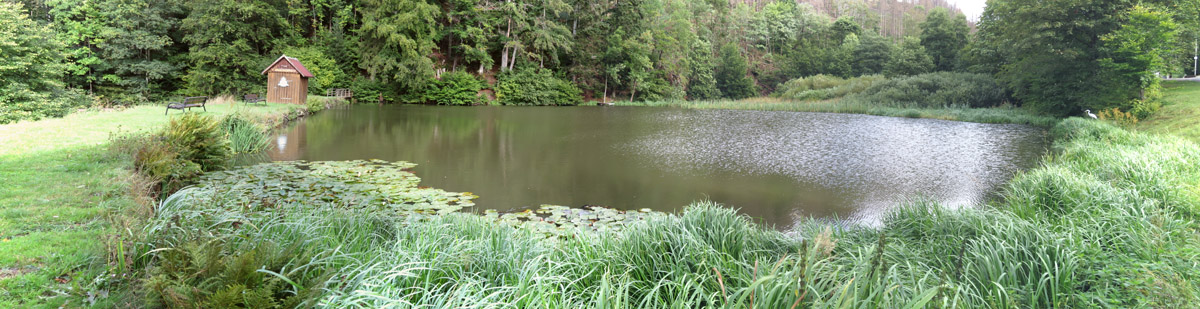 In Rhumspringe liegt ein weiterer Teich mit klarem Wasser.