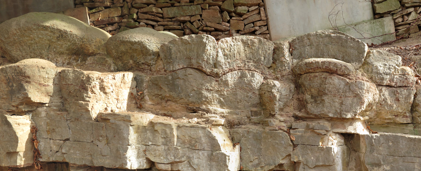 sieht man einigen Steinen den Kalkstein an. Die Steinbrüche in der