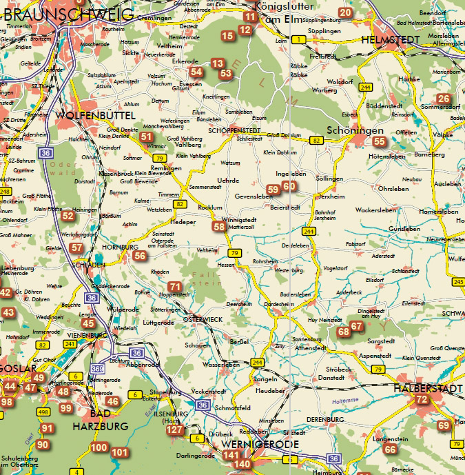 die Asse ist durch Nummer 51 gekennzeichnet, Der Fallstein durch Nr. 71